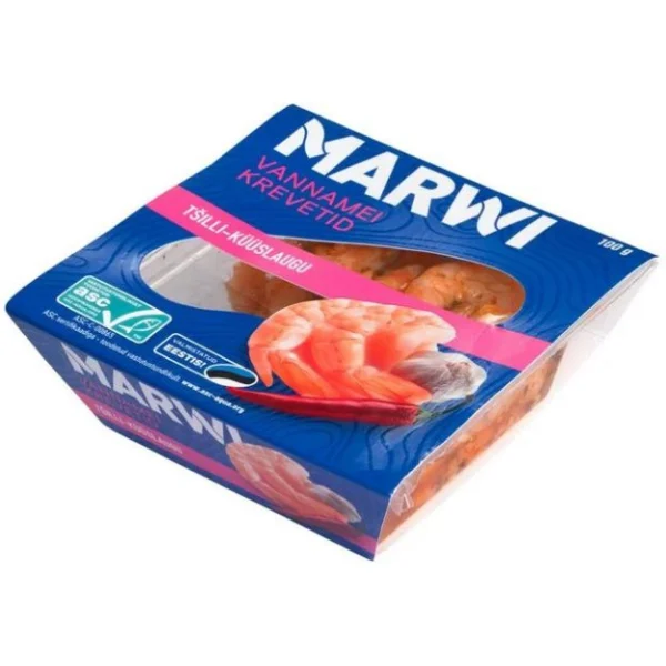 Vannamei krevetid tšilli-küüslauguga 100g/75g Marwi JP Foods