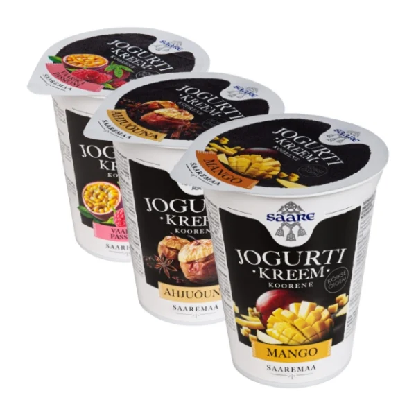 Saare jogurtikreemid 400g, mango; ahjuõuna; vaarika-passioni;
