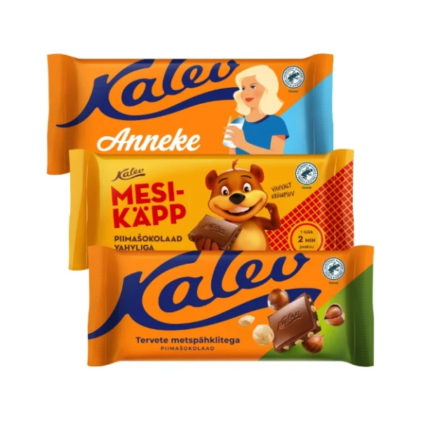 Kalevi piimašokolaadid 100g: Anneke, Mesikäpp, tervete pähklitega